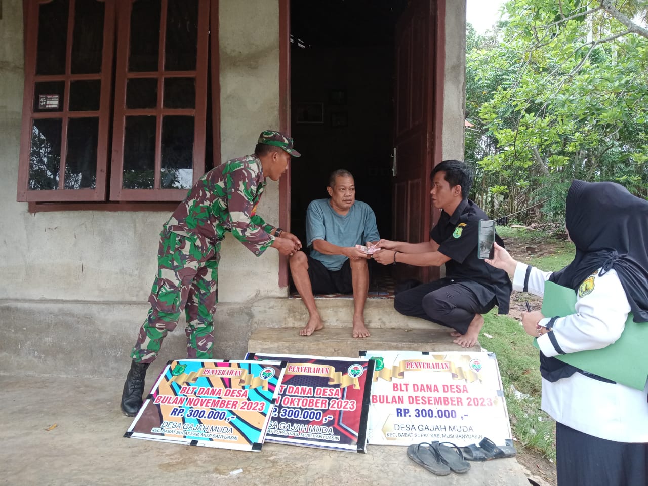 MUBA IB – Pelayanan Pemerintah Desa Gajah Muda, Kecamatan Babat Supat dalam pembagian bantuan langsung tunai dana desa (BLT DD) patut dicontoh oleh pemerintah desa lainnya. Betapa tidak, dalam pembagian BLT DD, Pemdes Gajah Muda dengan didampingi Babinsa dan Bhabinkamtibmas turun langsung membagikan BLT ke rumah warga yang sudah lansia yang tidak dapat mengambil ke kantor karena keadaan fisik yang tidak memungkinkan.