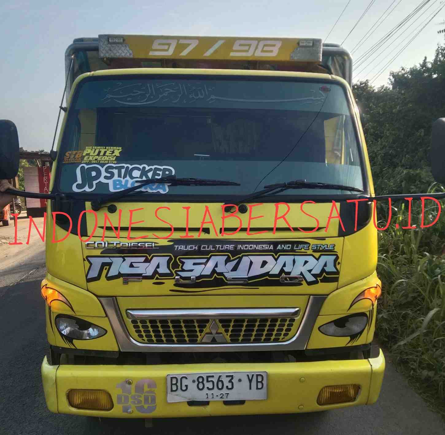 Salah satu kendaraan saat dijumpai tim gabungan berbagai media, Armada truk dengan identitas Mitsubishi Fuso HD125PS berwarna kuning dengan nomor polisi BG 8653 YB.