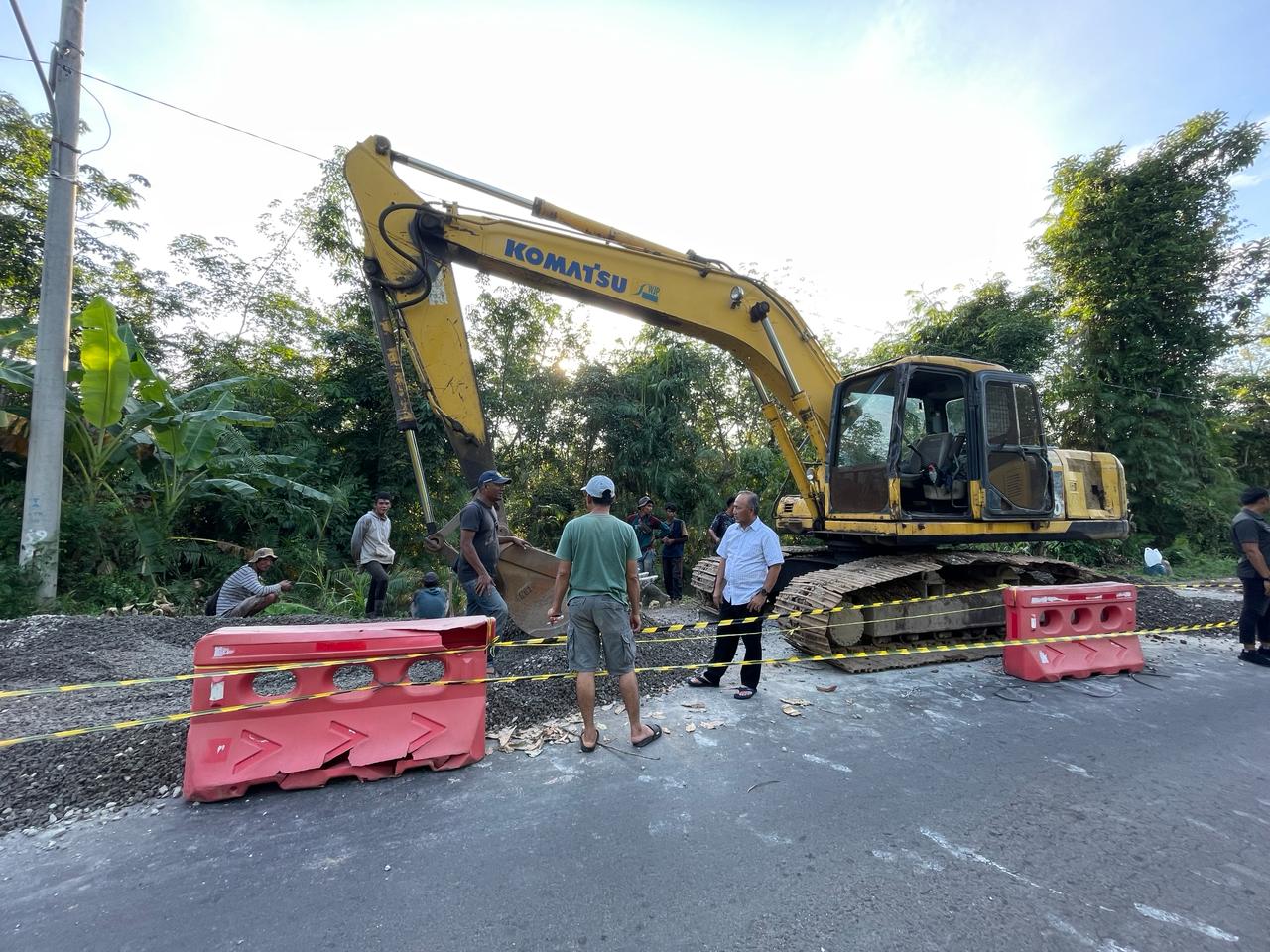 Pantauan di lokasi Rabu (24/1/2024) tampak perbaikan ruas jalan yang amblas tersebut langsung diperbaiki dan dipantau Pj Bupati Apriyadi Mahmud.