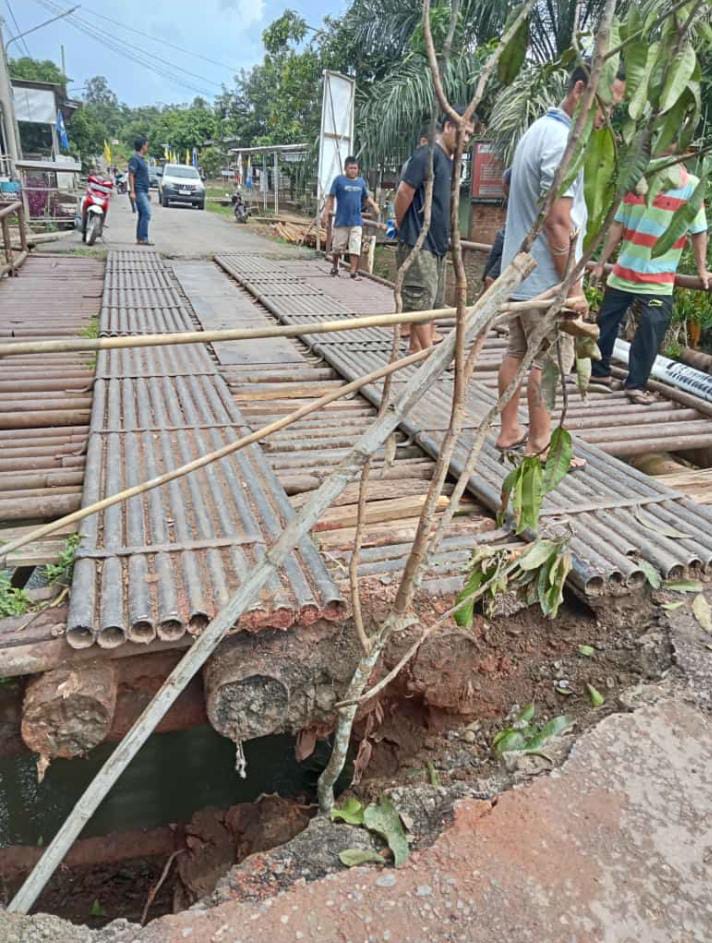Lantaran badan jembatan telah lapuk dan termakan usia, Yang mana tembok penahan tanah yang terletak di sisi barat jembatan kini Tanahnya mulai amblas.