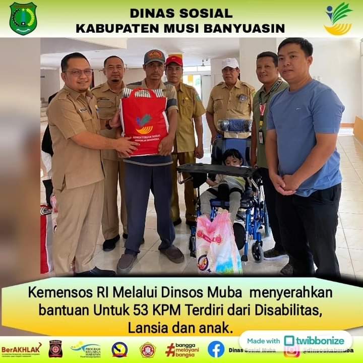 MUBA IB-Kemensos RI Melalui Dinas Sosial kabupaten Musi Banyuasin provinsi Sumatera Selatan menyerahkan bantuan Untuk 53 KPM Terdiri dari Disabilitas, Lansia dan anak. hari Selasa (27/02/2024)