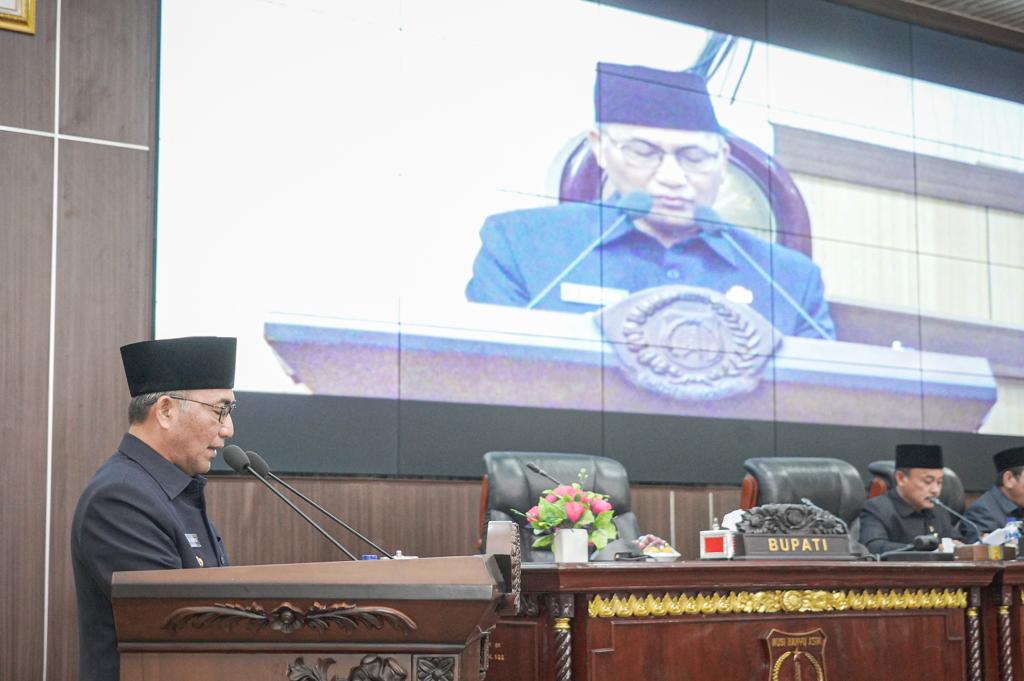 Rapat Paripurna ini dipimpin oleh Ketua DPRD Muba H Sugondo dan dihadiri para Wakil Ketua DPRD Muba dan Anggota DPRD Muba, Pj Sekda Muba Musni Wijaya SSos MSi, perwakilan Forkopimda, para Staf Ahli Bupati, Asisten serta Kepala Perangkat Daerah Muba.