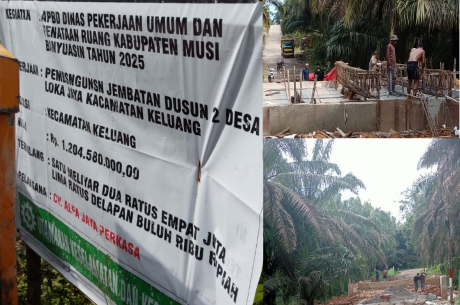 MUBA, IB – Dugaan kelalaian serius mencoreng proyek pembangunan jembatan di Dusun 2, Desa Loka Jaya, Kecamatan Keluang, Kabupaten Musi Banyuasin (Muba). Proyek bernilai Rp1.204.508.000 yang bersumber dari APBD Tahun Anggaran 2025 itu disinyalir kuat mengabaikan standar Keselamatan dan Kesehatan Kerja (K3), sementara fungsi pengawasan Dinas Pekerjaan Umum dan Penataan Ruang (PUPR) Muba dipertanyakan publik.