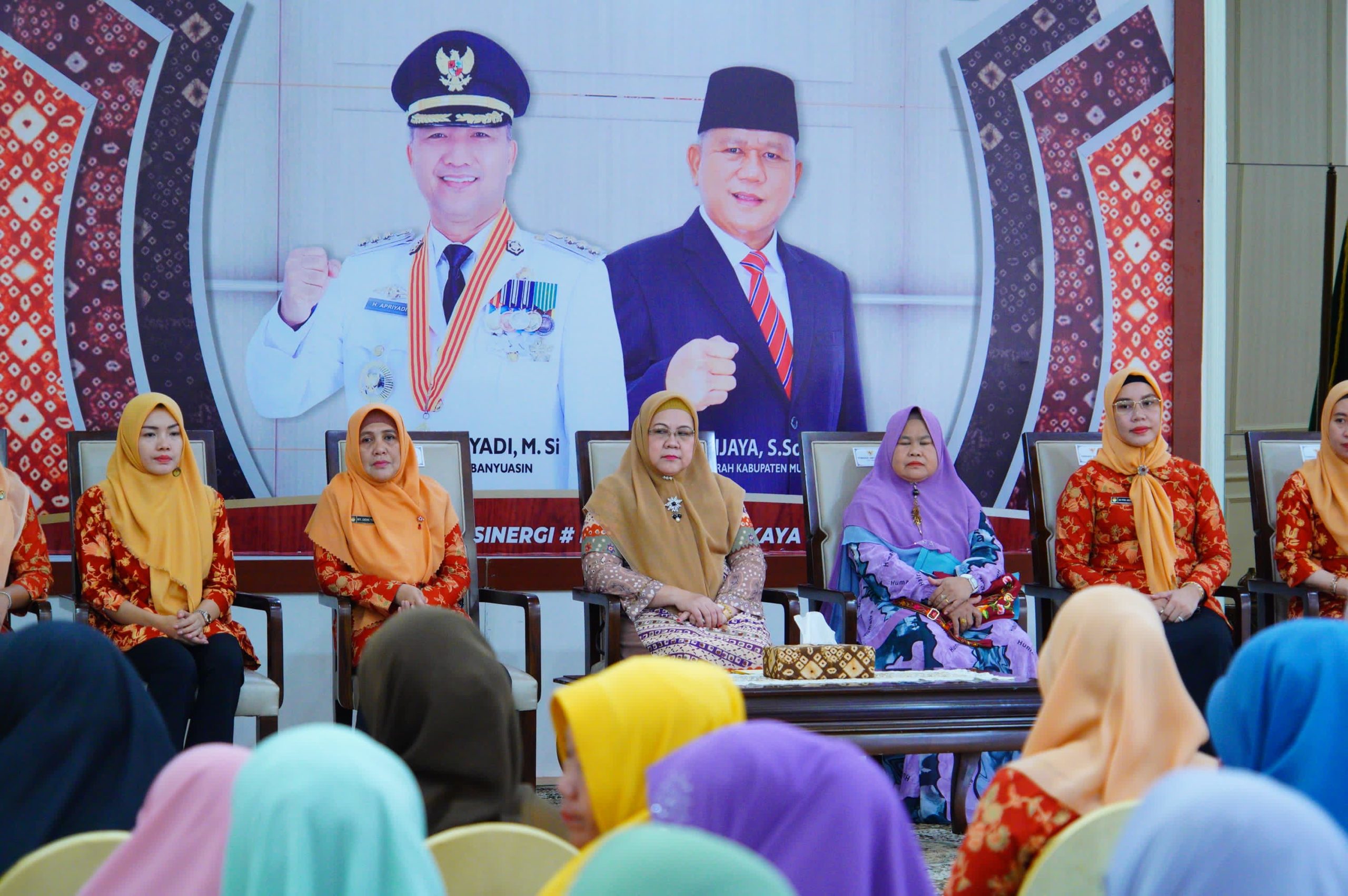 MUBA IB-Menjelang hari raya Idul Fitri 1445 H, senyum Ibu-ibu pengajian di Bumi Serasan Sekate terpancar saat menerima bingkisan dari Pembina Dharma Wanita Persatuan (DWP) Kabupaten Musi Banyuasin (Muba) Hj Asna Aini Apriyadi. Para ibu-ibu berkumpul di Guest House Griya Bumi Serasan Sekate, Jumat (5/4/2024).