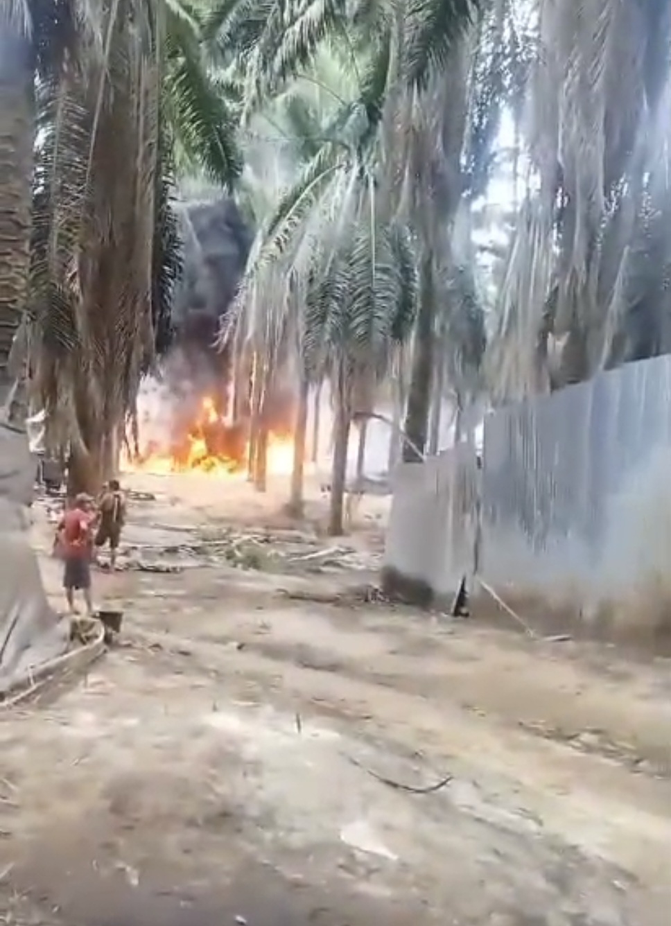 Api berkobar hebat disertai asap hitam pekat yang membumbung tinggi. Tanpa kehadiran aparat penegak hukum, tanpa garis polisi, dan tanpa alat berat, warga memadamkan api secara manual, dengan air dan menunggu minyak di sumur habis terbakar.