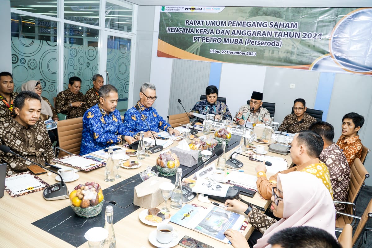 “Kita Bismillah saja, Insya Allah realisasi pendirian Pamigor ini berjalan on the track,” ungkap Pj Bupati Apriyadi Mahmud saat menghadiri Rapat Umum Pemegang Saham (RUPS) PT. Petro Muba (Perseroda) di Ruang Meeting Besar PT Petro Muba Building, Rabu (27/12/2023).